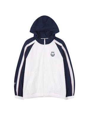 봄 간절기 시즌에 가볍게 착용하기 좋은 후드 바람막이 스타일로 투웨이 지퍼를 활용하여 활동성에 용이함