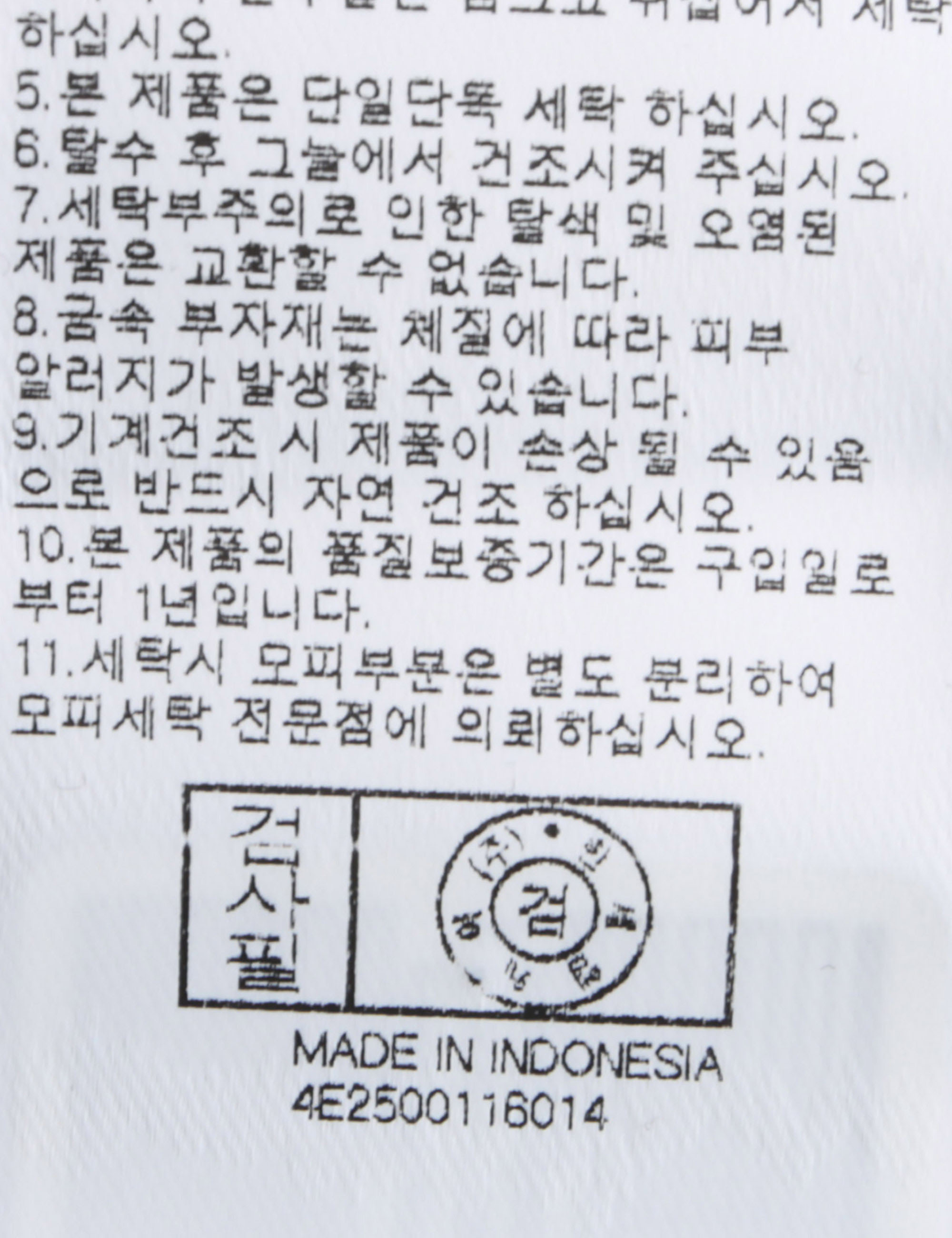 | 세탁방법 및 취급시 주의사항 | 본 제품은 손세탁 하십시오.(케어라벨참고) |