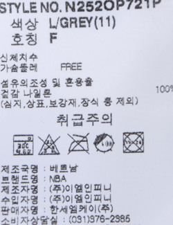| 세탁방법 및 취급시 주의사항 | 중성세제로 단 시간내에 세탁하십시오.(케어라벨참고) |