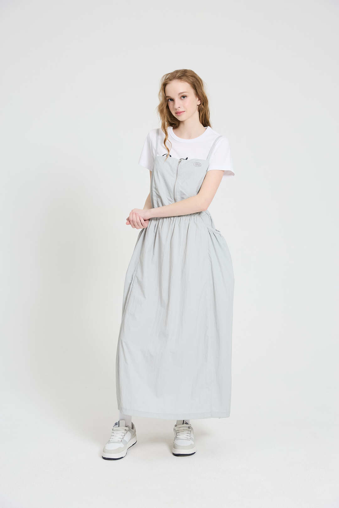 - 소프트한 터치감의 나일론 원단을 사용하여 가볍게 착장이 가능한 스타일의 뷔스티에 원피스