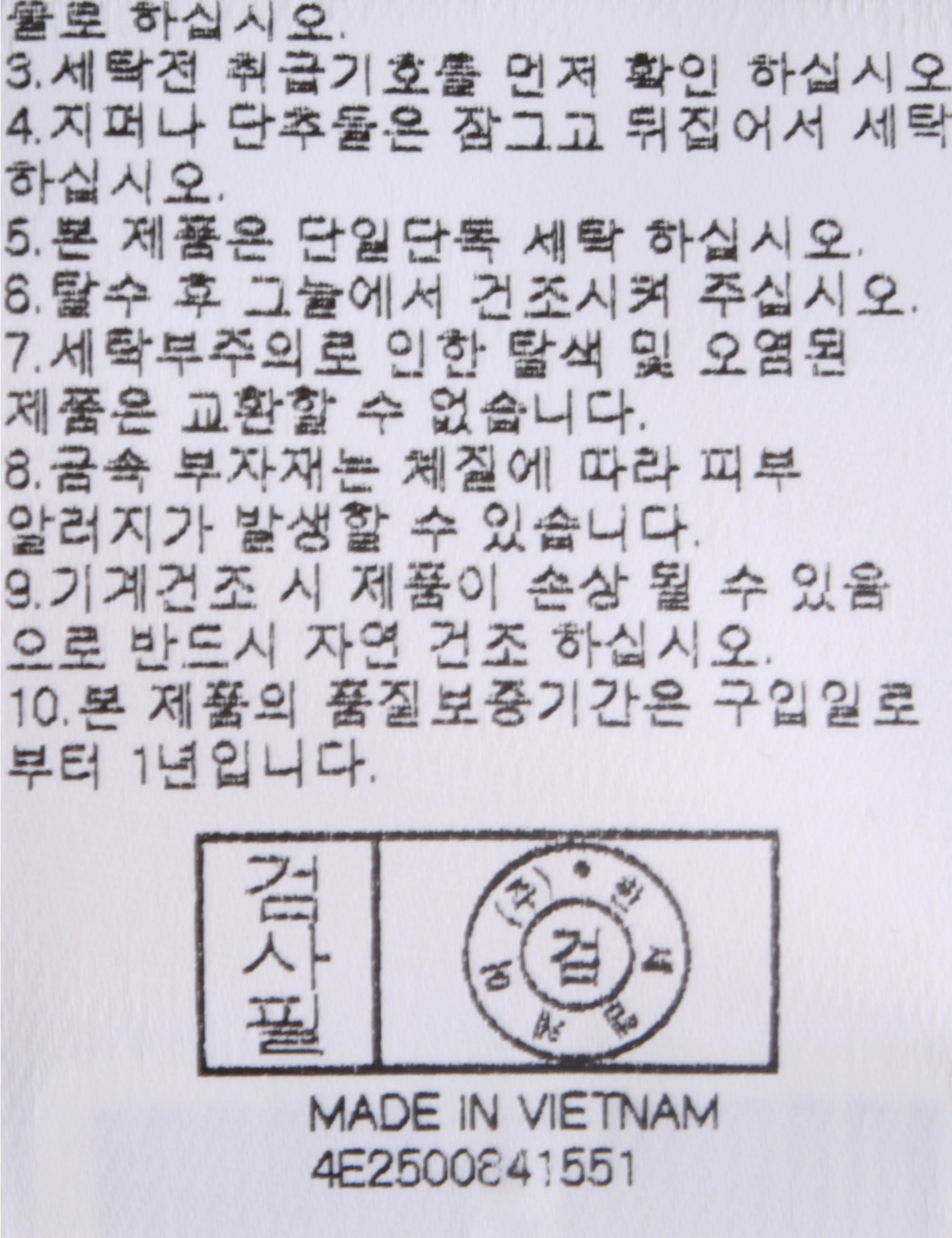 | 세탁방법 및 취급시 주의사항 | 본 제품은 손세탁 하십시오.(케어라벨참고) |