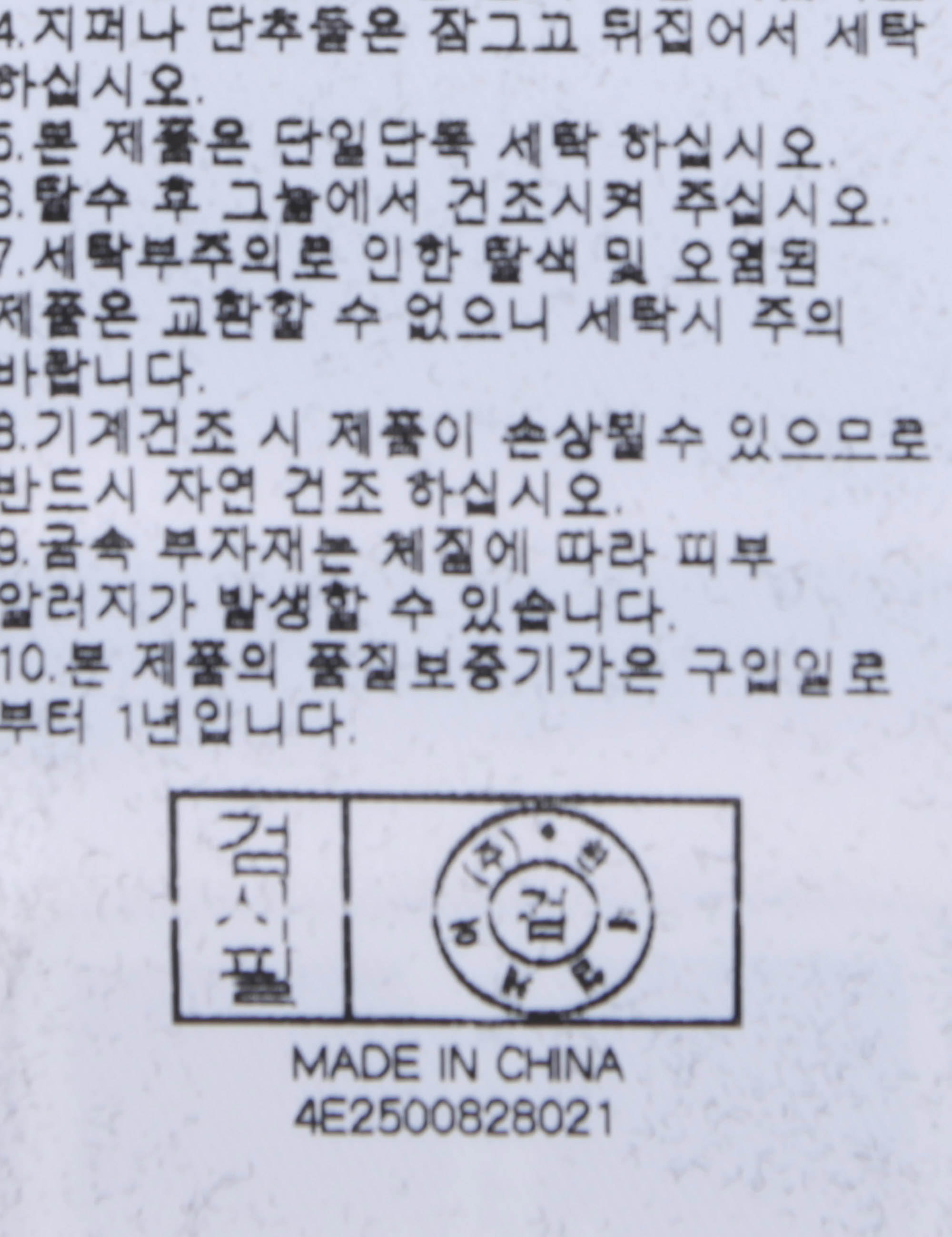 | 세탁방법 및 취급시 주의사항 | 중성세제로 단 시간내에 세탁하십시오.(케어라벨참고) |
