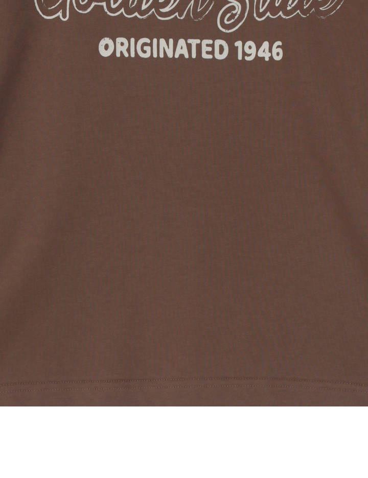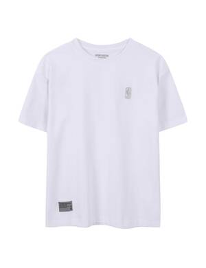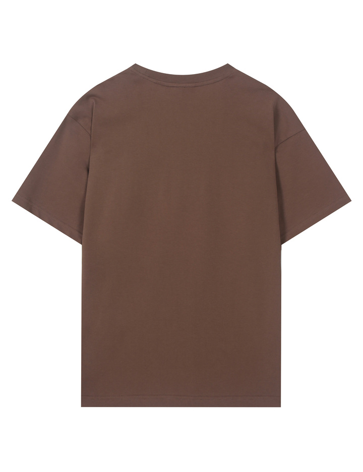 프린트가 포인트인 티셔츠로 적당히 드롭된 어깨선과 여유 있는 오버 핏
