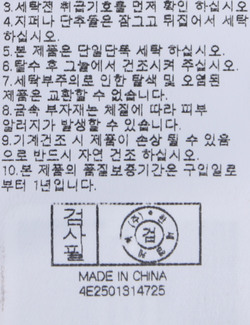 | 세탁방법 및 취급시 주의사항 | 본 제품은 손세탁 하십시오.(케어라벨참고) |