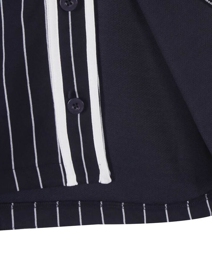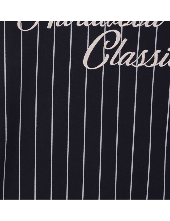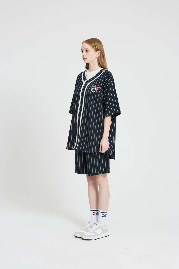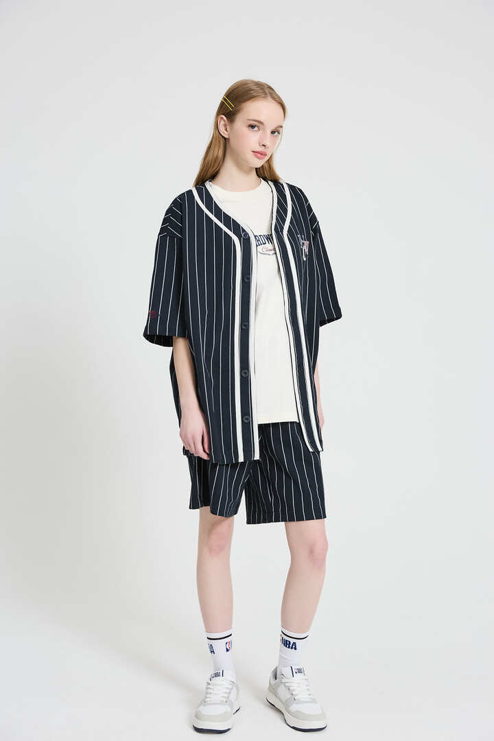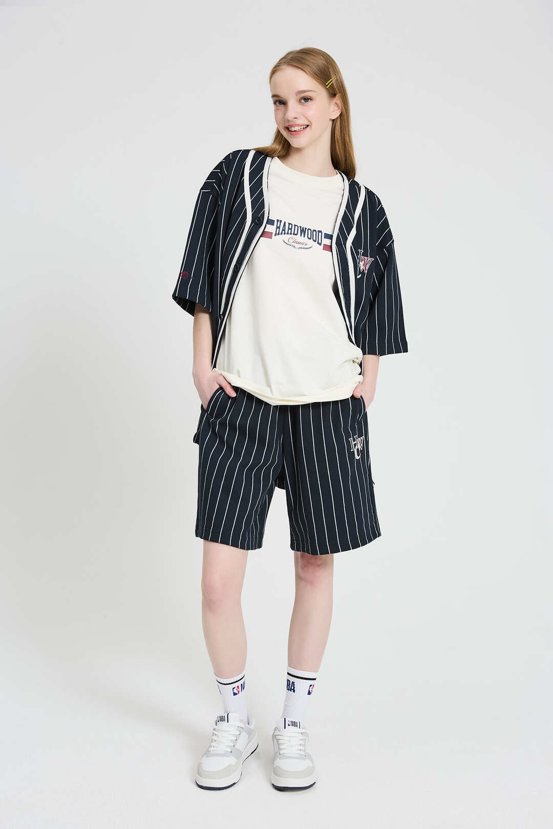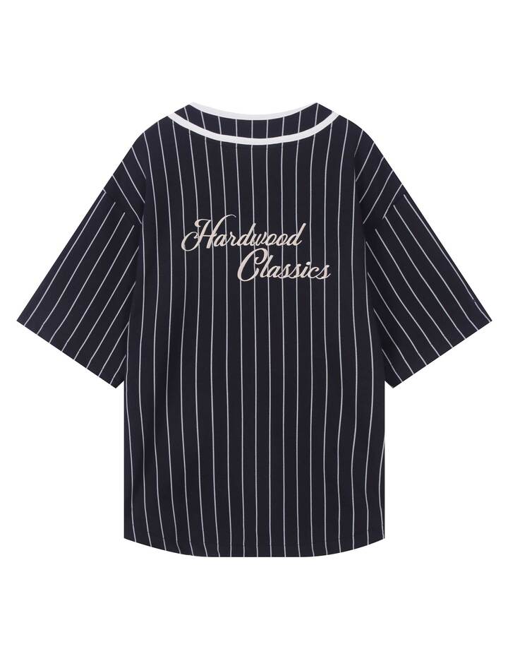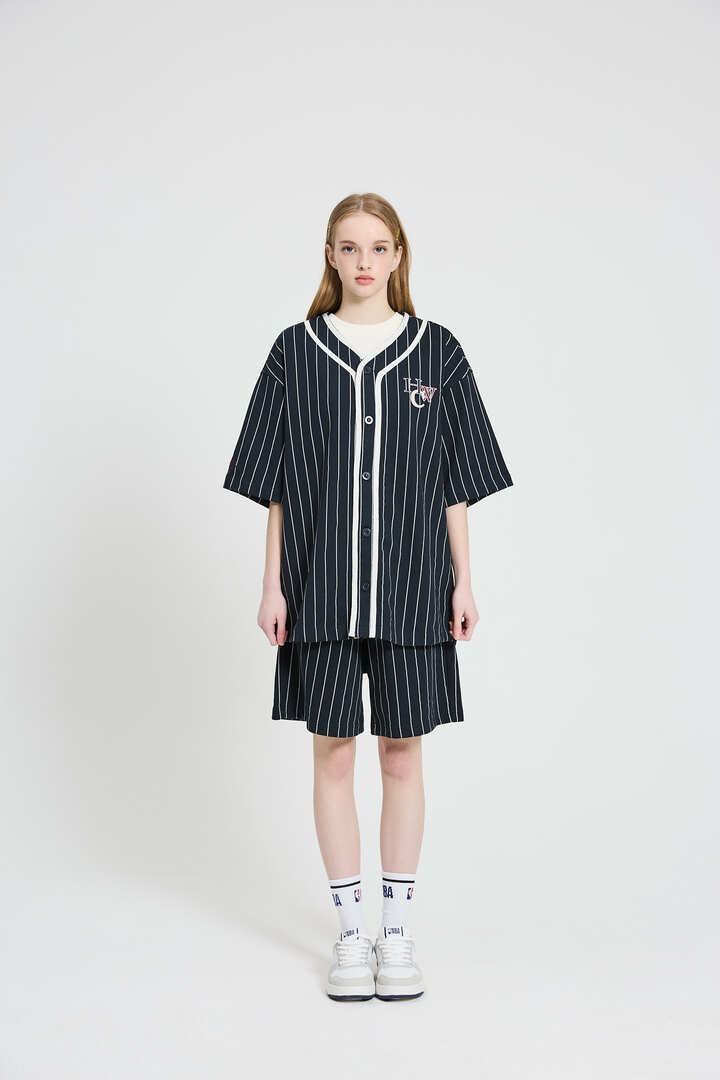 은은한 반라바 기법의 스트라이프 프린팅과 베이스볼 져지 디테일을 HWC 만의 무드로 표현함