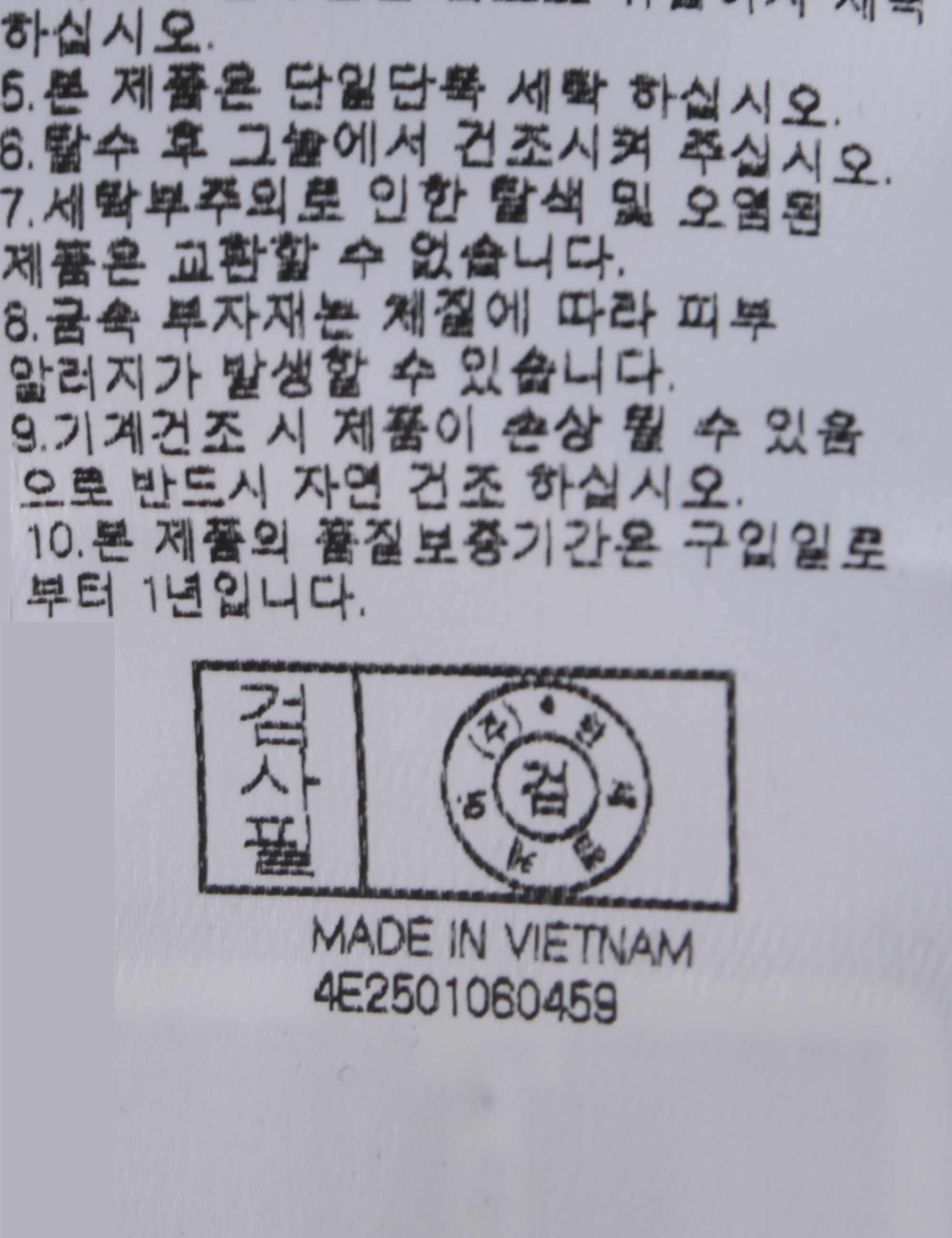| 세탁방법 및 취급시 주의사항 | 본 제품은 손세탁 하십시오.(케어라벨참고) |
