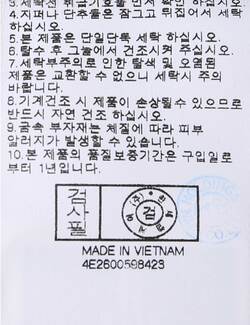 | 세탁방법 및 취급시 주의사항 | 중성세제로 단 시간내에 세탁하십시오.(케어라벨참고) |