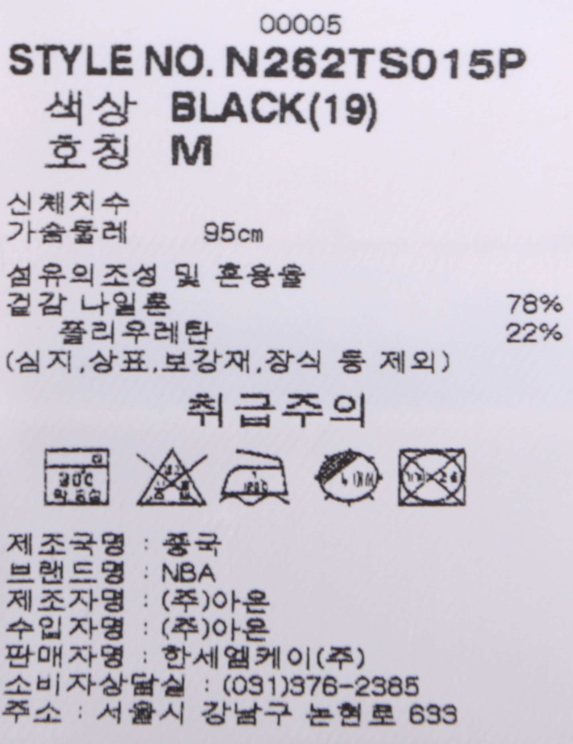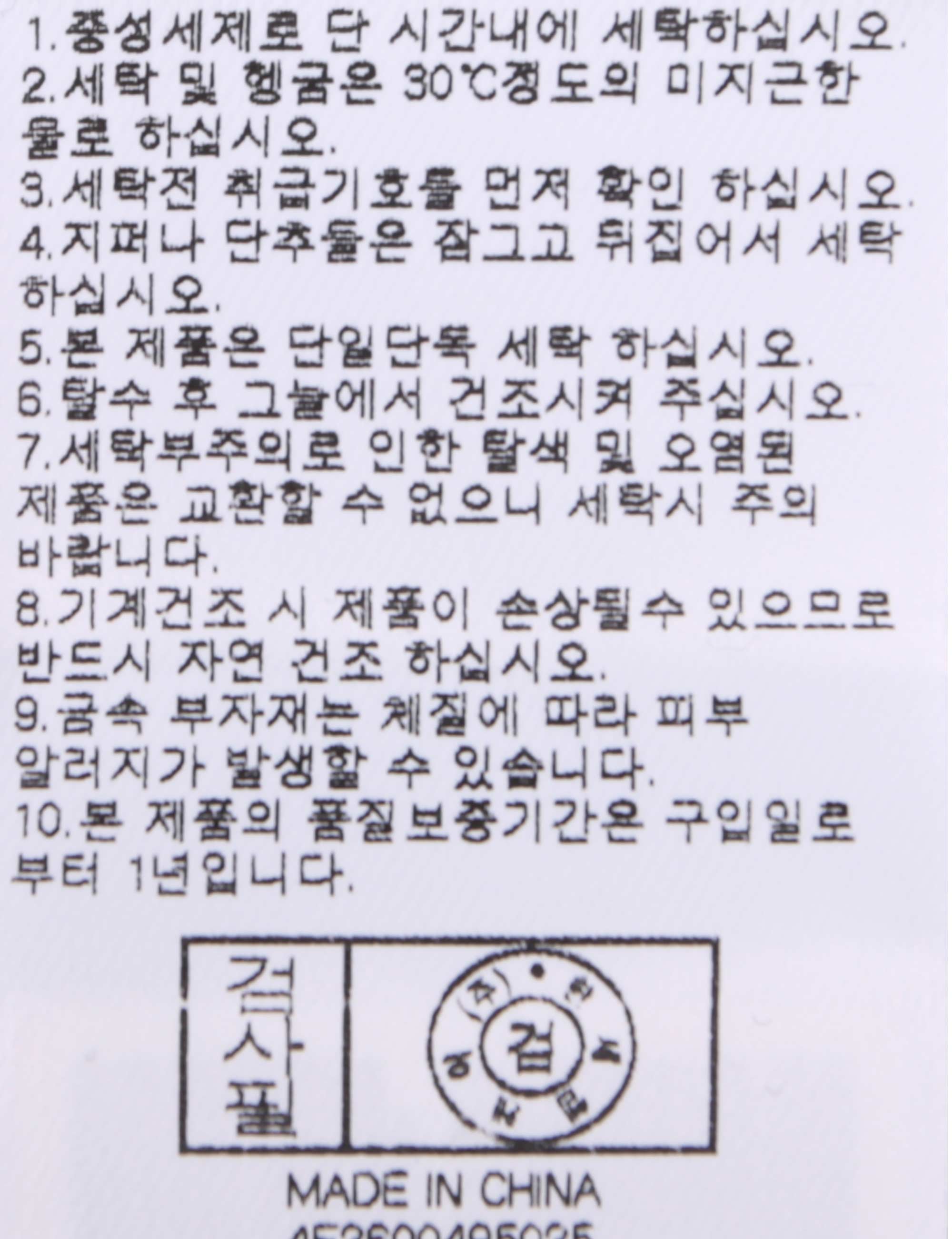 | 세탁방법 및 취급시 주의사항 | 중성세제로 단 시간내에 세탁하십시오.(케어라벨참고) |