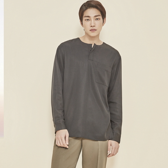 | 상품명 | 남성 세미오버 칼라리스 변형 반오픈 텐셀 셔츠(O192SH230P) |
