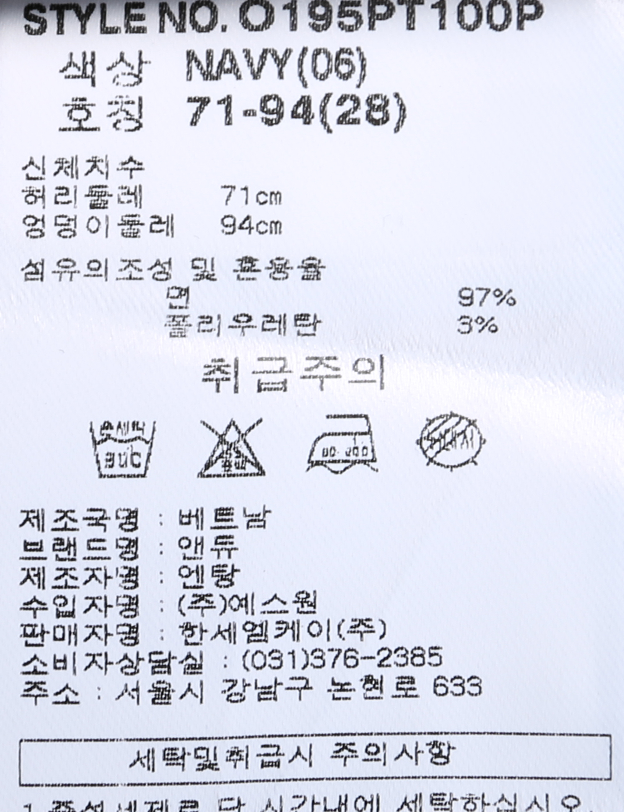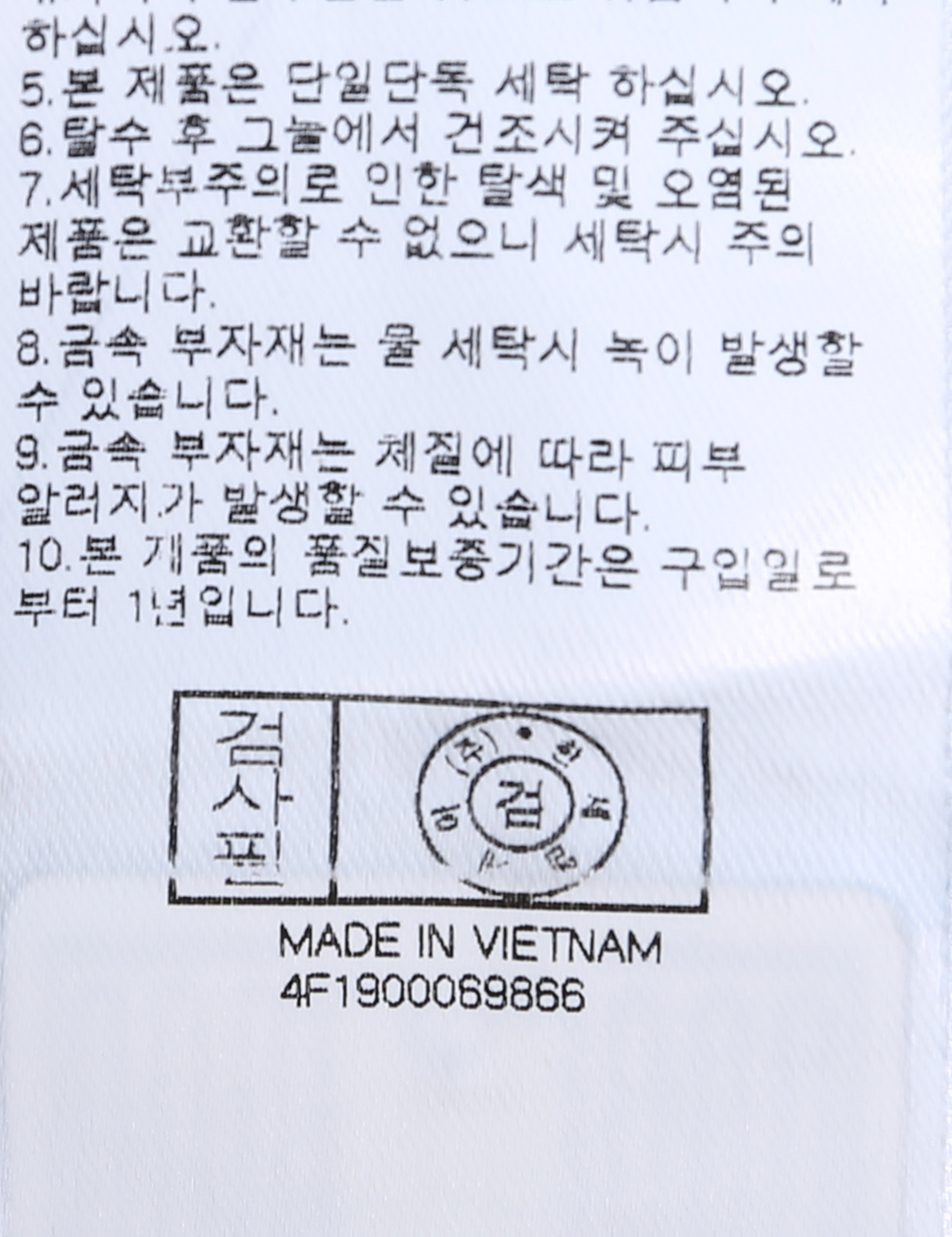 | 세탁방법 및 취급시 주의사항 | 중성세제로 단 시간내에 세탁하십시오.(케어라벨참고) |