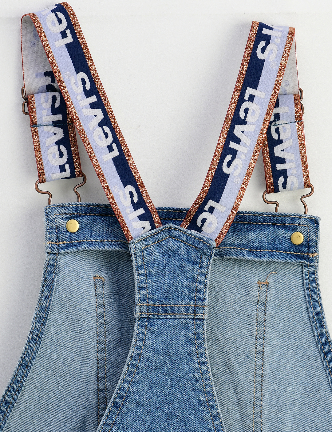 로고 스트랩으로 길이 조절이 가능한 스트레치 데님 오버롤