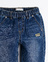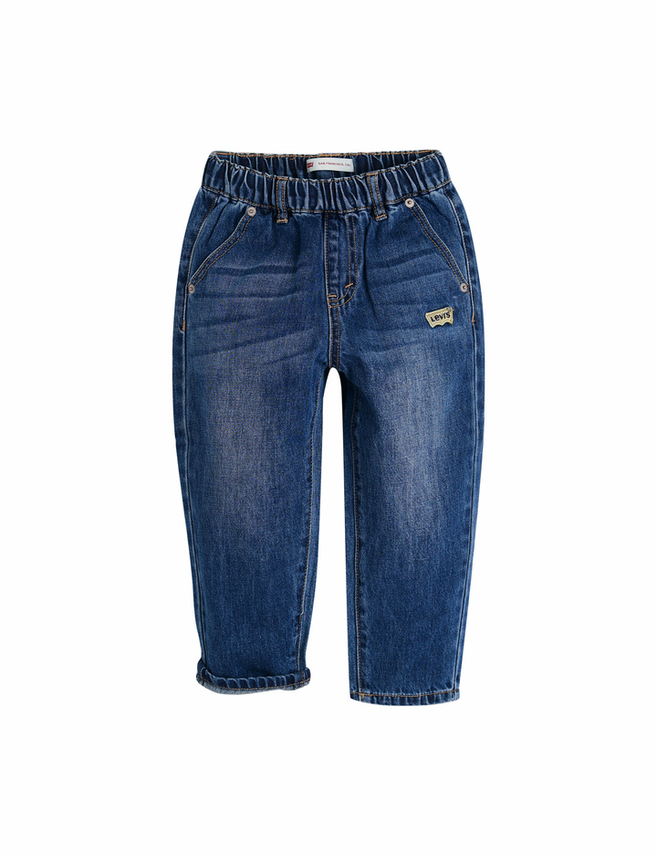 배트윙 자수가 포인트로 들어간배기 핏의 풀온 데님 팬츠. 재출시상품