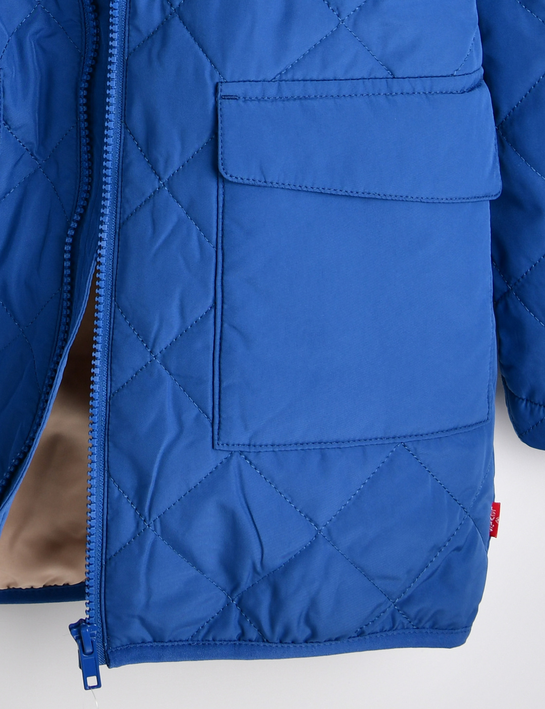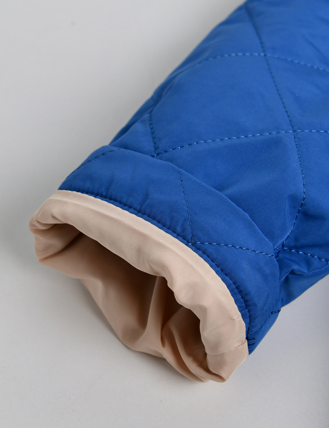 다이아몬드 퀼팅이 들어가 있으며, 엉덩이를 덮는 기장의 퀼팅 자켓.