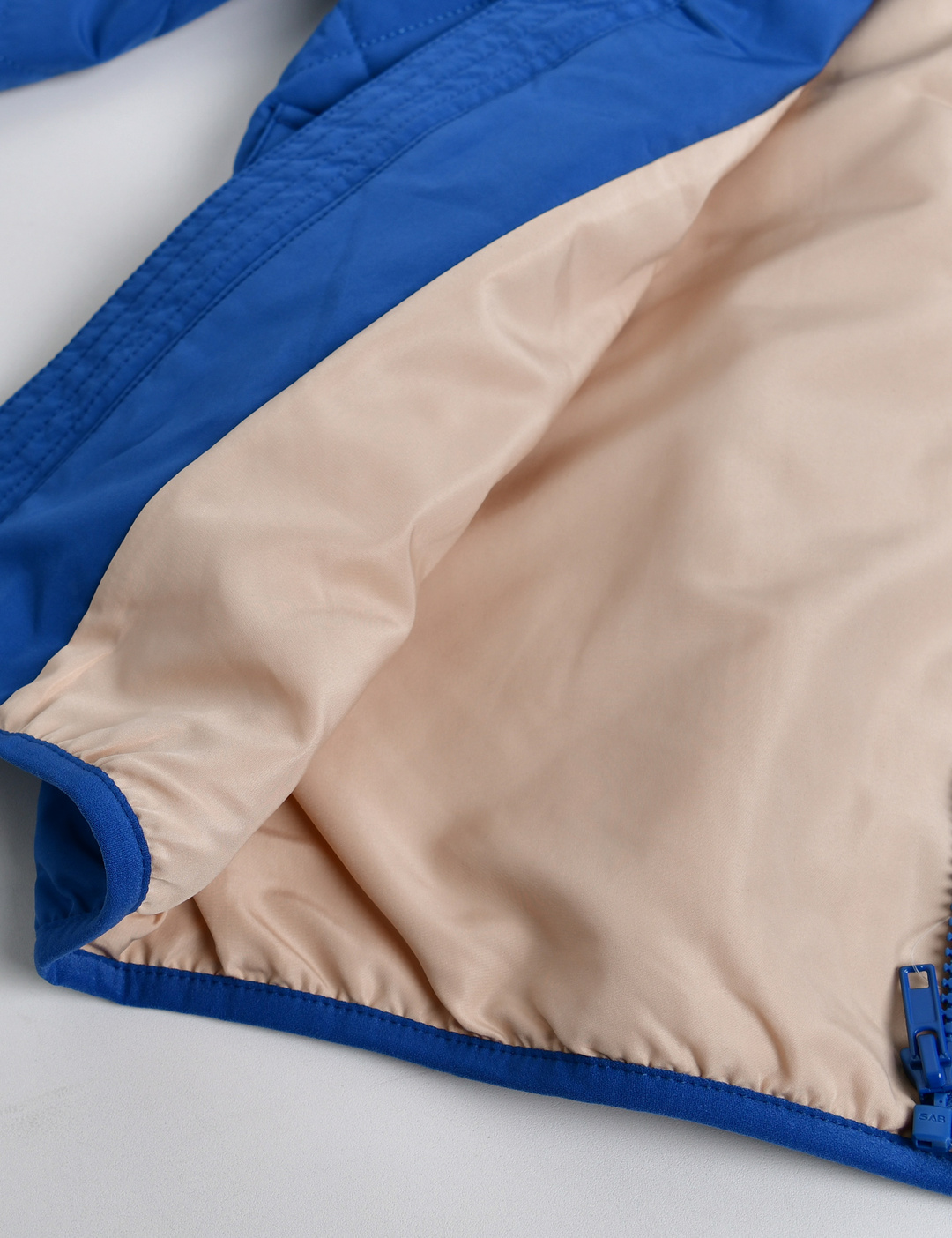 탈착가능한 후드가 있어 실용적이며, 소매 안감 배색으로 접어서 연출 가능